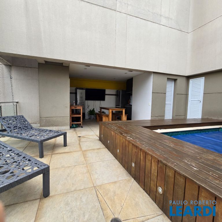 na parte superior, uma piscina privativa aquecida, churrasqueira, banheiro, espaço para descanso, jardim de inverno e uma vista espetacular.