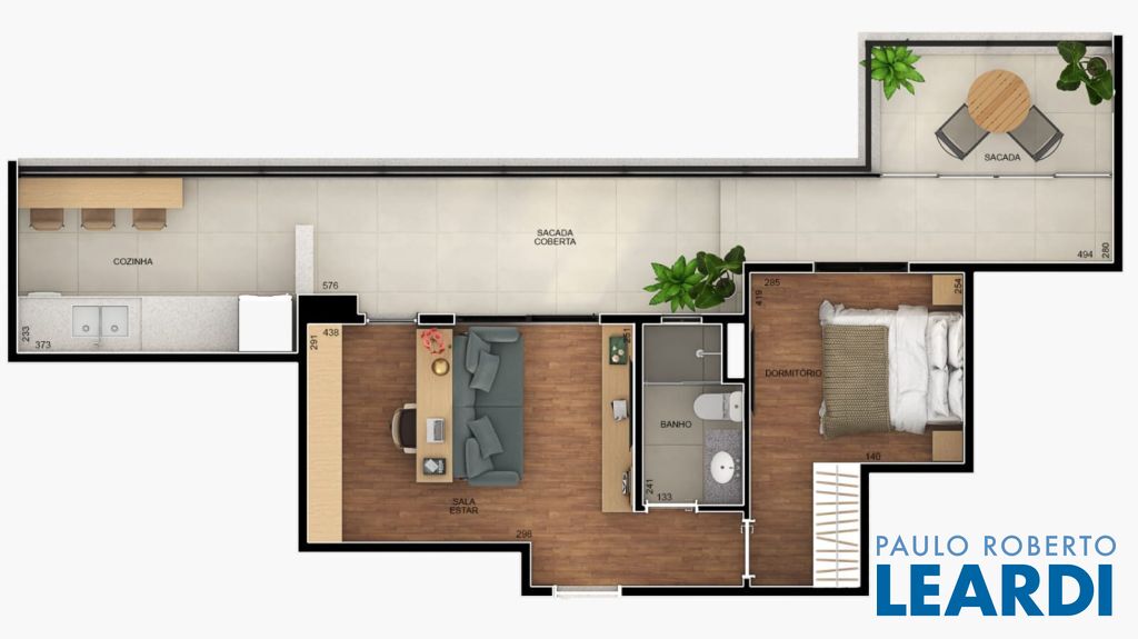 - Área interna restrita ao dormitório, banheiro e sala
